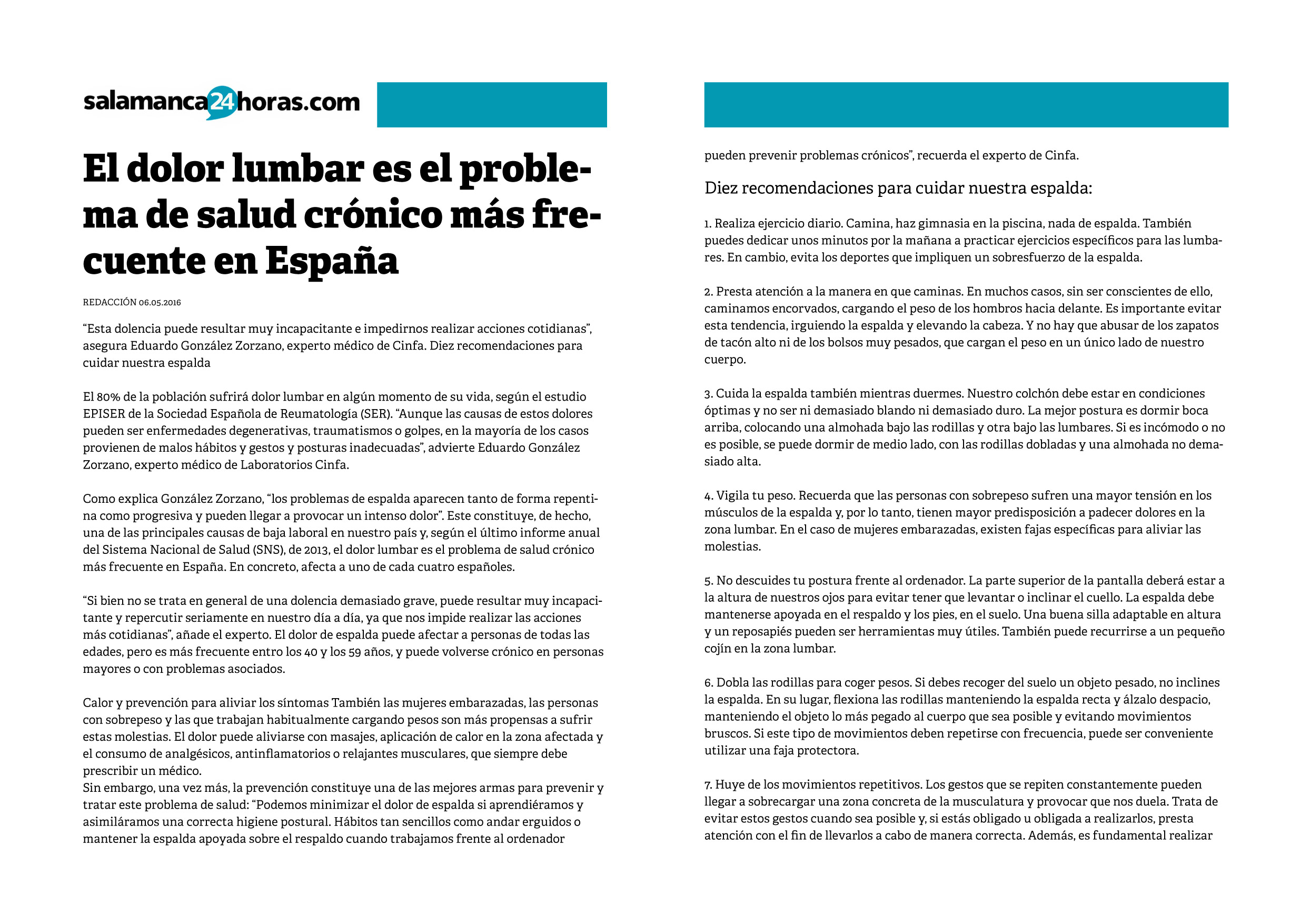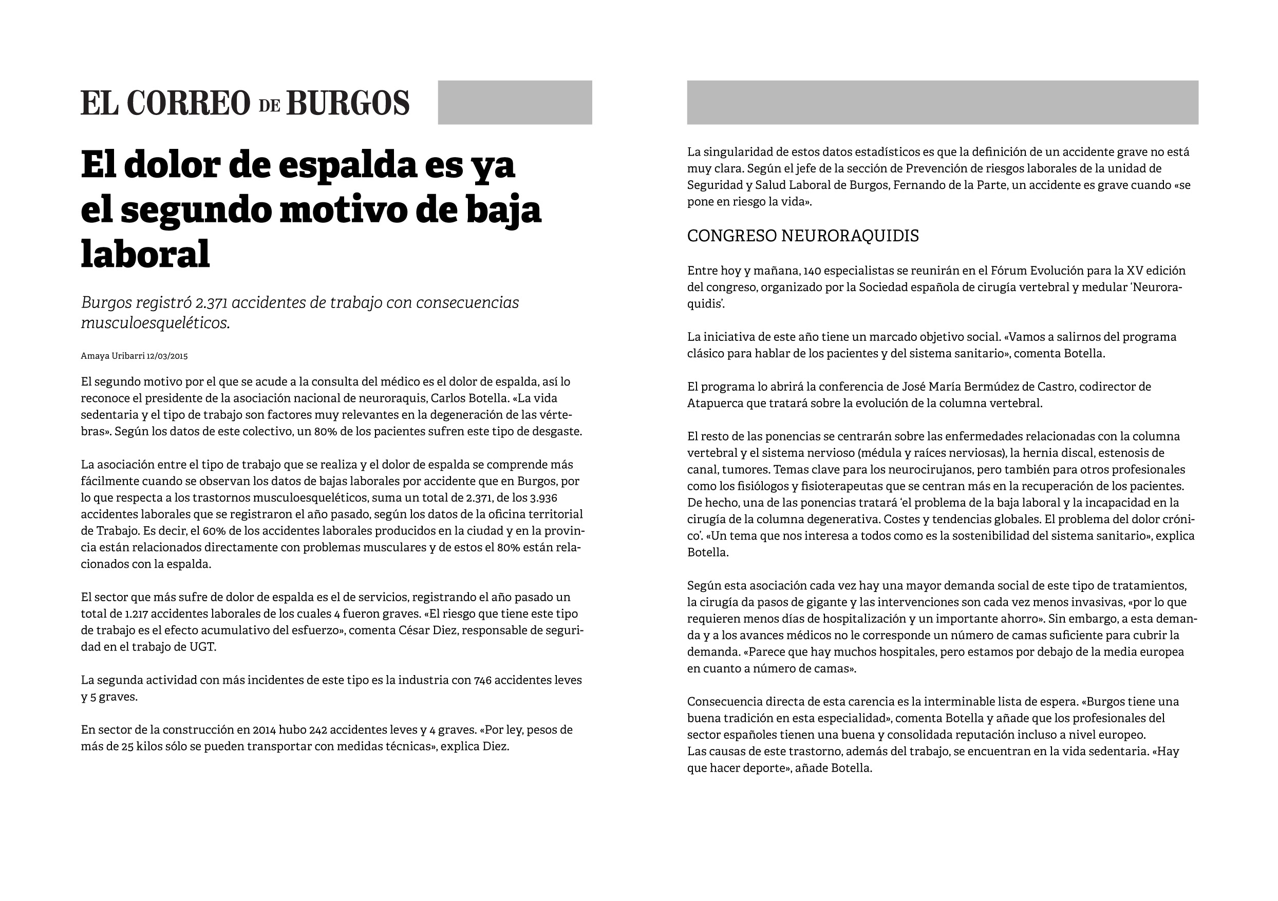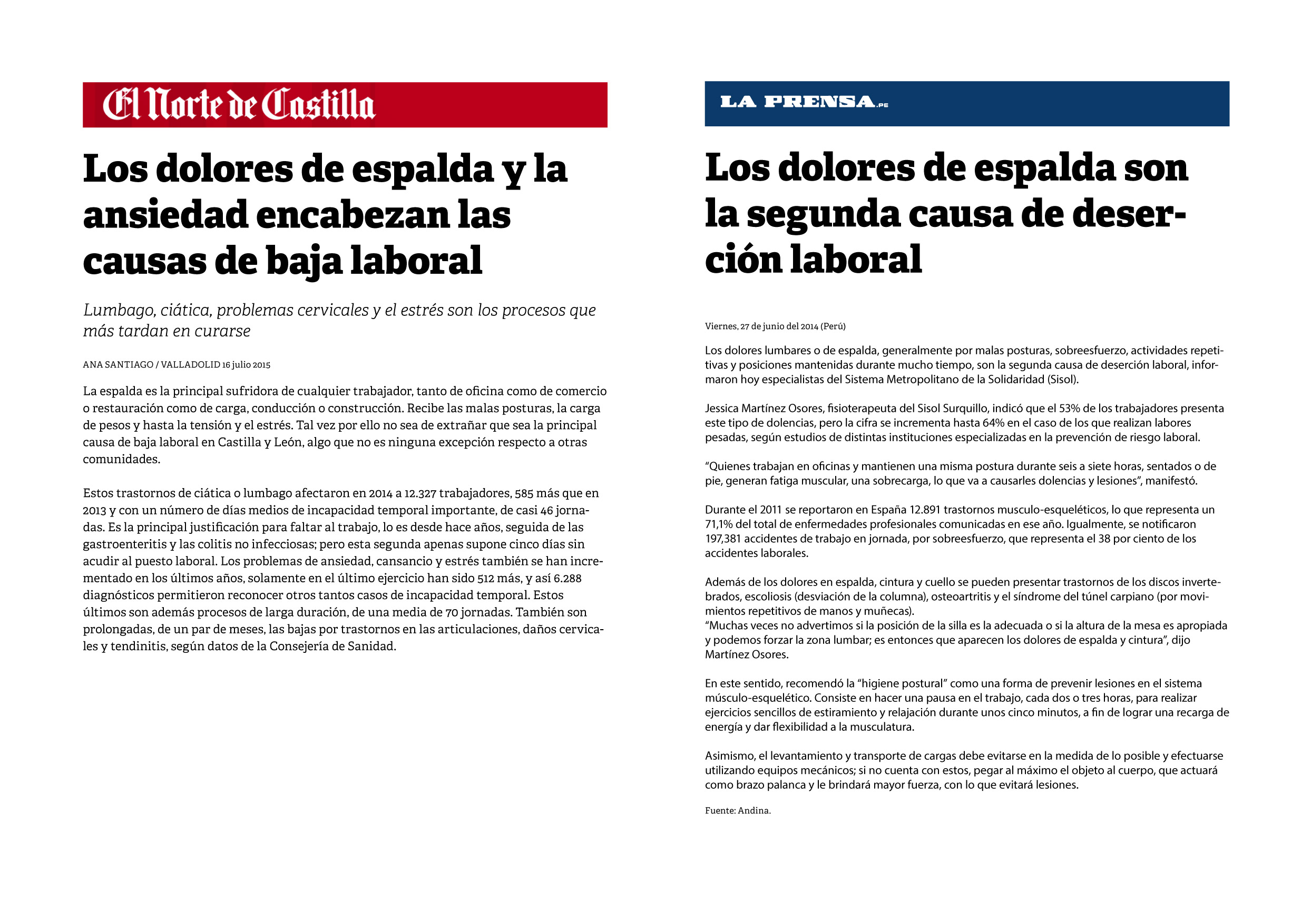 El dolor de espalda, segundo motivo de baja laboral en España. Los medios informativos, nacionales e internacionales, nos avisan de cómo las malas posturas y la falta de ejercicio ocasionan el envejecimiento prematuro de la columna vertebral.